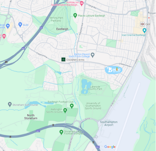 Located in Eastleigh, just a minute’s drive from M3 junction 13 and M27 junction 5. Very close to the airport and train station.